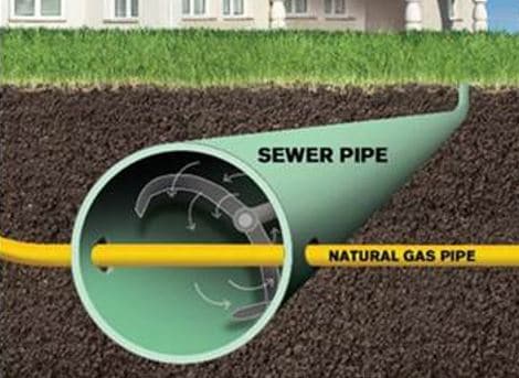 The situation can go undetected for years until in such time, the line fails or becomes clogged. A professional drain clearer or homeowner attempting to open a clogged sewer line with an aggressive cutting tool may be exposed to a potentially hazardous situation such as electric shock or natural gas from a broken gas line traveling into their property.